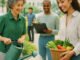 Líderes ecológicos del Ecobarrio La Esmeralda disfrutando de una conversación en los espacios verdes de su territorio.