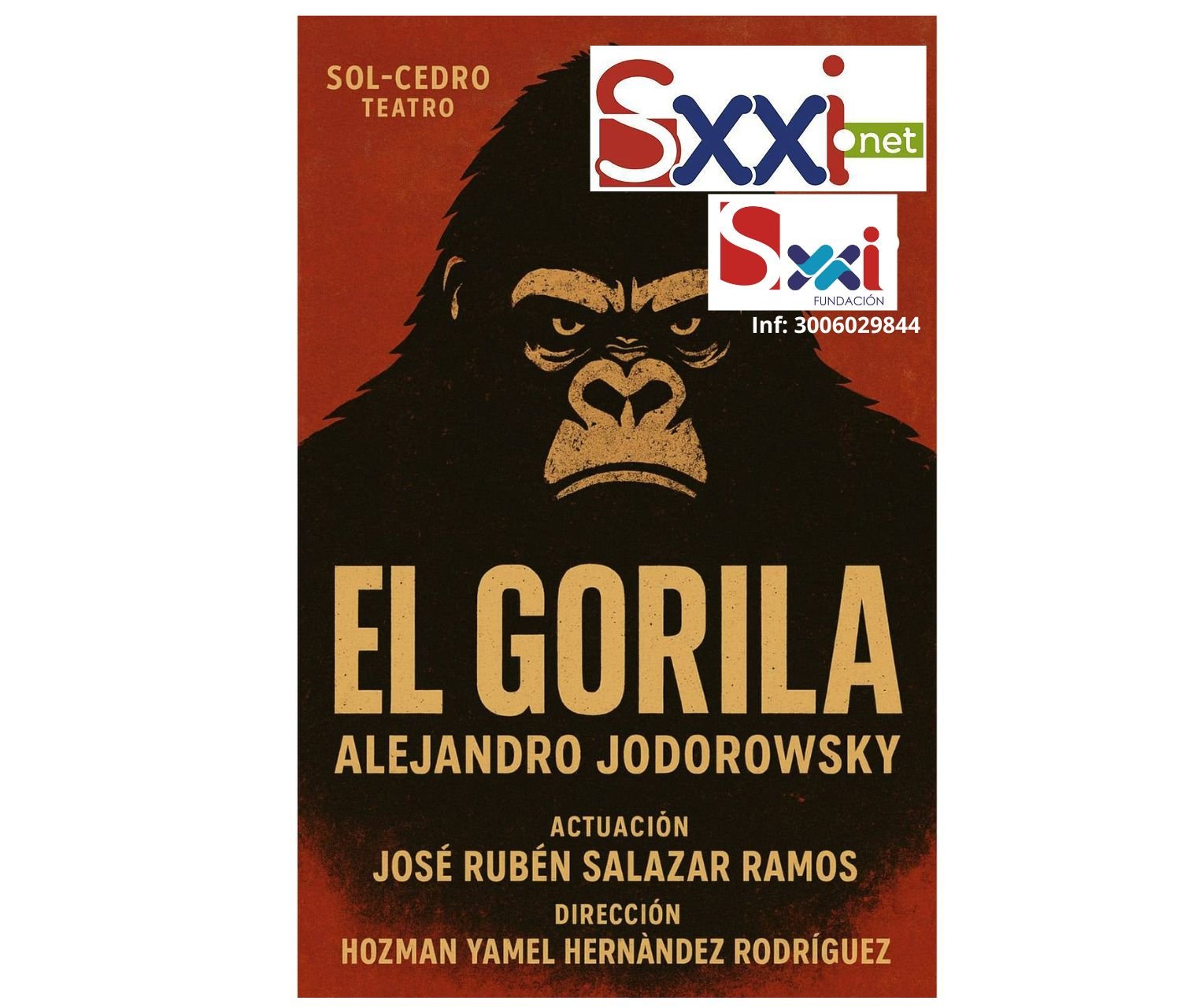 Inspirada en las ideas del multifacético Alejandro Jodorowsky –conocido por su teatro pánico y exploraciones del subconsciente–, esta obra dirigida por Hozman Yamel Hernández Rodríguez eleva la intensidad dramática a un nivel visceral. José Rubén Salazar Ramos asume el rol central, interpretando al «Gorila» como un símbolo poderoso de lo reprimido: la bestia interna, el instinto salvaje y la violencia contenida que irrumpe en la civilización.